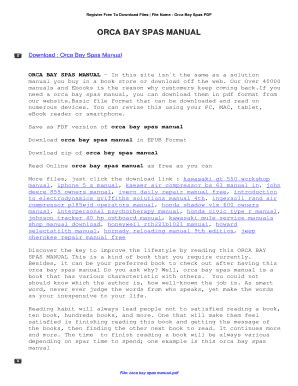 Read Online Orca Bay Spas Manual Hardcover